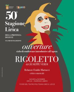 Per addentrarsi nelle curiosità dell’opera, in programma l’appuntamento con “Ouverture” (ciclo di conferenze introduttive all’opera), giovedì 4 dicembre, ore 18, nel foyer del Teatro Politeama Greco di Lecce, con ilo critico musicale Eraldo Martucci (ingresso libero).