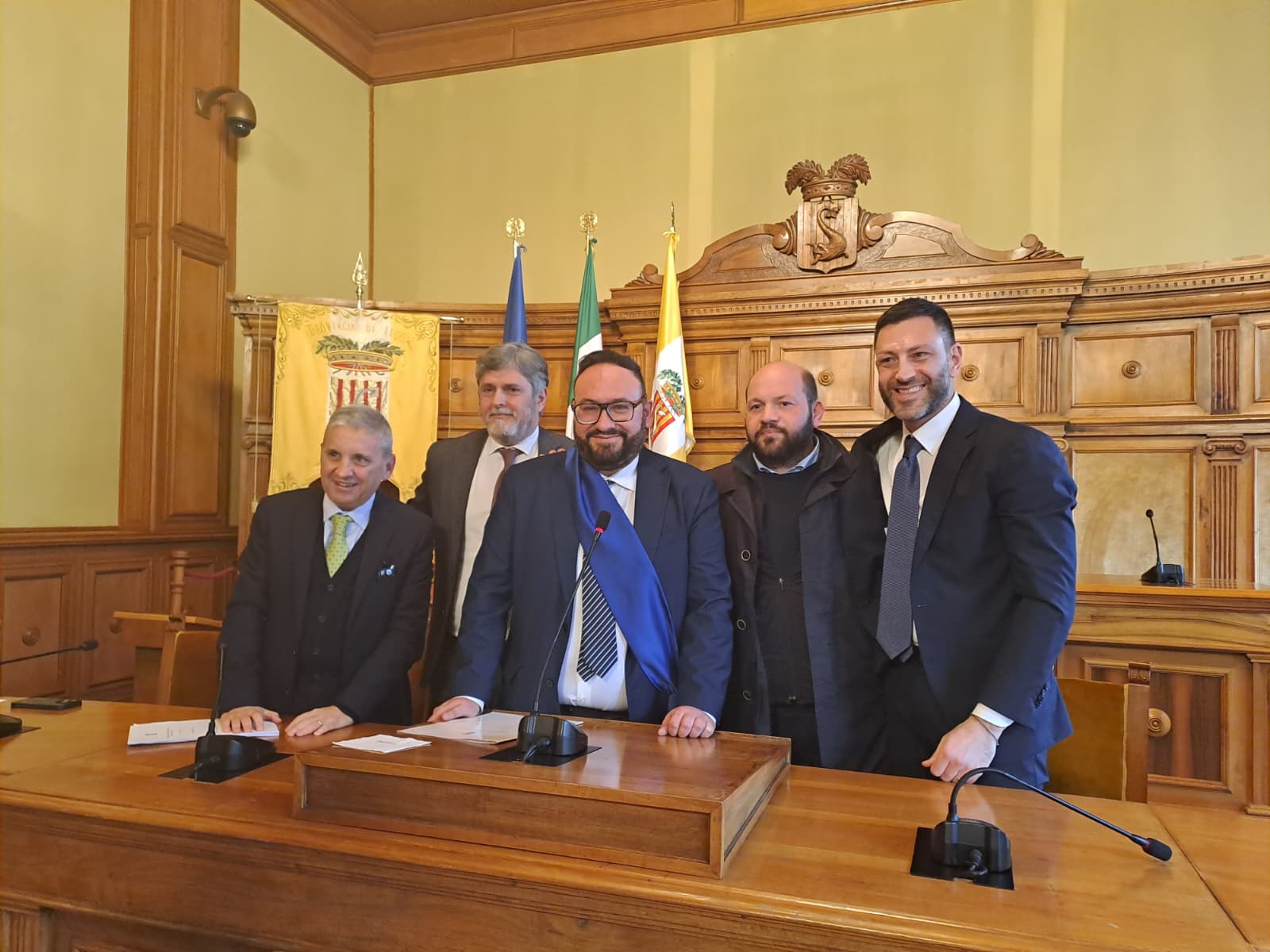 Alle ore 11.25 di oggi, il segretario generale Angelo Caretto ha proclamato eletto a presidente della Provincia di Lecce Fabio Tarantino. Di fronte ad una sala consiliare gremitissima di Palazzo dei Celestini, il direttore generale Andrea Romano ha fatto indossare la fascia azzurra ufficiale al neo numero uno dell’Ente di via Umberto I.