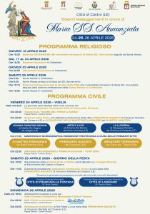 Tutto è pronto a Castro per i solenni festeggiamenti in onore di Maria SS. Annunziata, patrona della Città.
