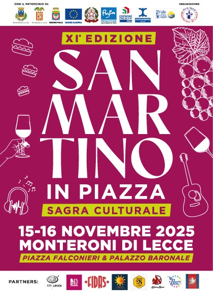 Martedì 11 novembre, alle ore 10.30, la sala conferenze stampa di Palazzo Adorno a Lecce ospita la presentazione dell’undicesima edizione di “San Martino in Piazza”, la tradizionale sagra culturale dedicata al vino novello, ai sapori locali e alla convivialità.