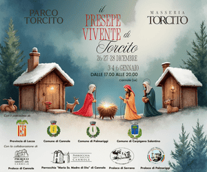 Un’occasione unica per vivere un Natale autentico, immersi nella storia, nella natura e nei sapori del Salento: è quello che offrirà ai visitatori il “Presepe Vivente di Parco Torcito” a Cannole, aperto nei giorni 26, 27 e 28 dicembre e 3, 4 e 6 gennaio, dalle ore 17 alle ore 20.