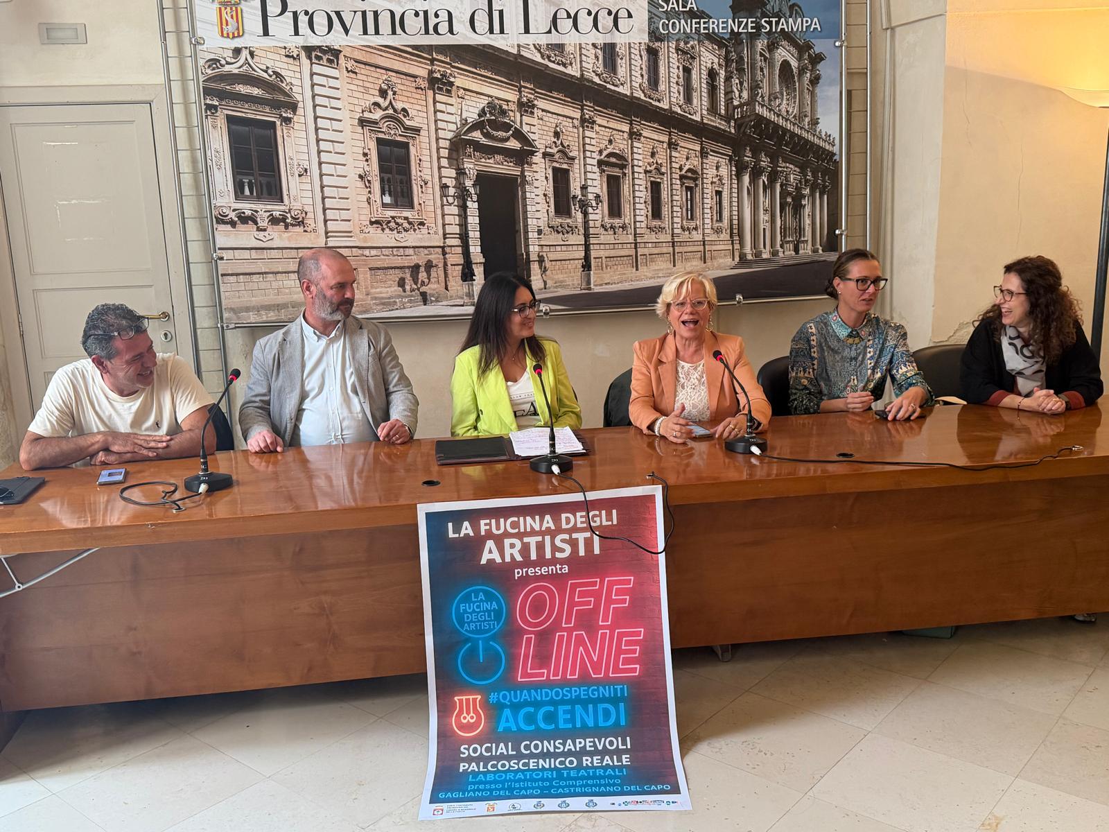 Promosso dall’associazione La Fucina degli Artisti, attiva da anni nel territorio salentino nella promozione di iniziative culturali, educative e sociali, “Off line” è realizzato con il patrocinio della Provincia di Lecce, dei Comuni di Castrignano del Capo e Morciano di Leuca, in collaborazione con l’Istituto De Blasi di Gagliano-Castrignano, con il contributo del Consiglio regionale della Puglia.