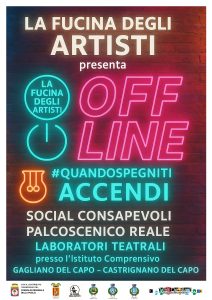 Promosso dall’associazione La Fucina degli Artisti, attiva da anni nel territorio salentino nella promozione di iniziative culturali, educative e sociali, “Off line” è realizzato con il patrocinio della Provincia di Lecce, dei Comuni di Castrignano del Capo e Morciano di Leuca, in collaborazione con l’Istituto De Blasi di Gagliano-Castrignano, con il contributo del Consiglio regionale della Puglia.